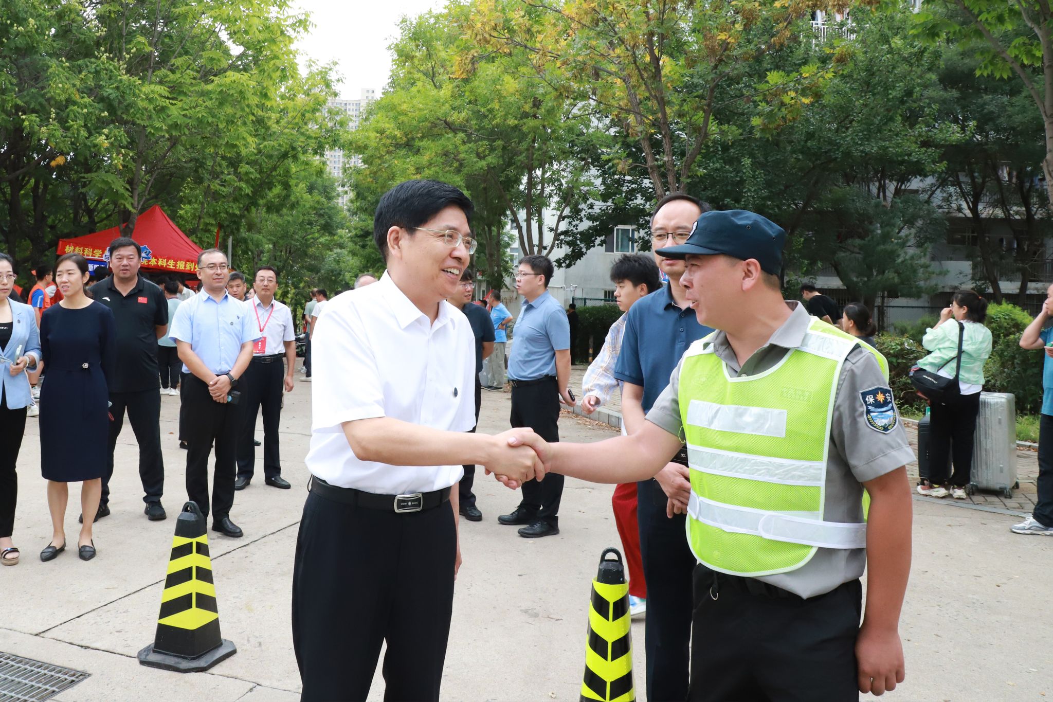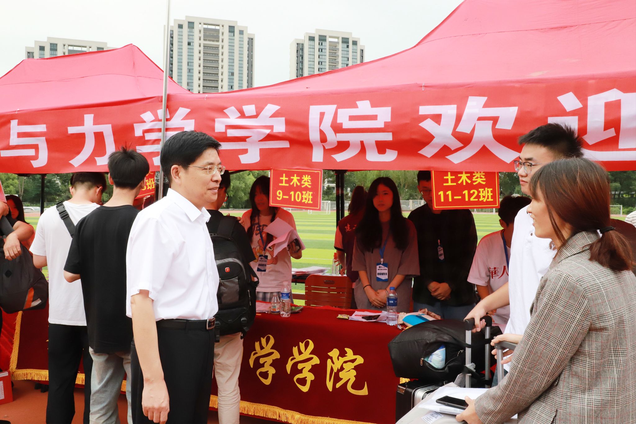 学校领导高度重视迎新工作。党委书记赵险峰,党委副书记、校长赵丁选先后带领相关部门负责人来到东、西校区迎新现场,全流程视察和指导迎新工作,慰问迎新工作人员、学生志愿者、安保人员、后勤服务人员和执勤民警。