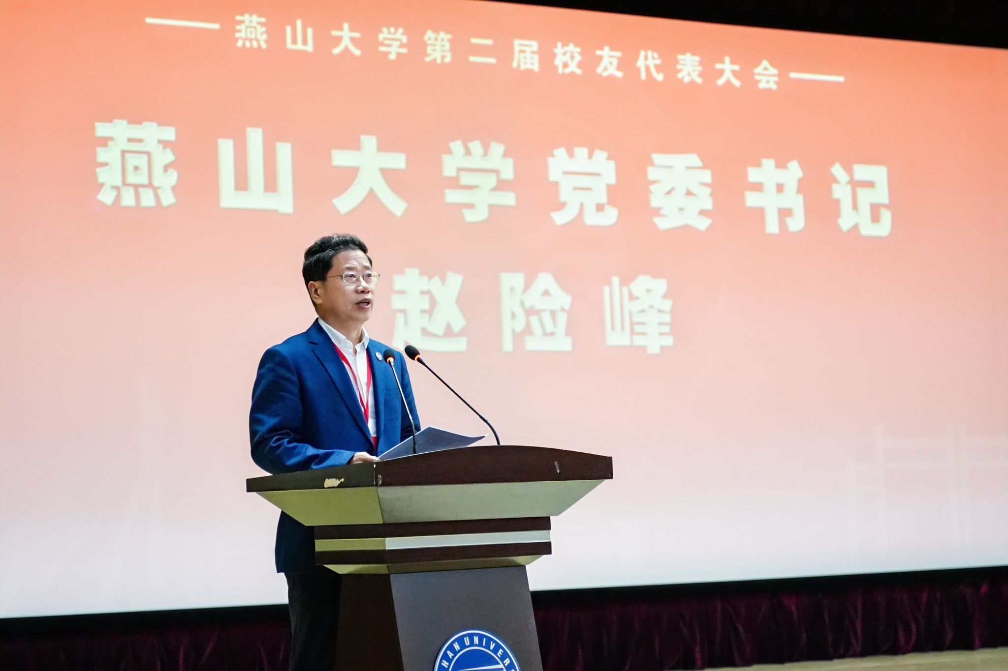 燕山大学第二届校友代表大会在雄壮的校歌声中圆满结束。(编辑 李文韬)