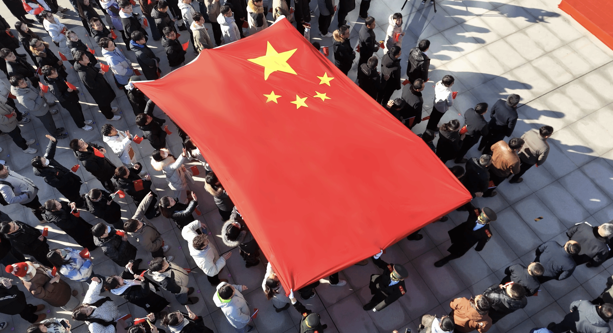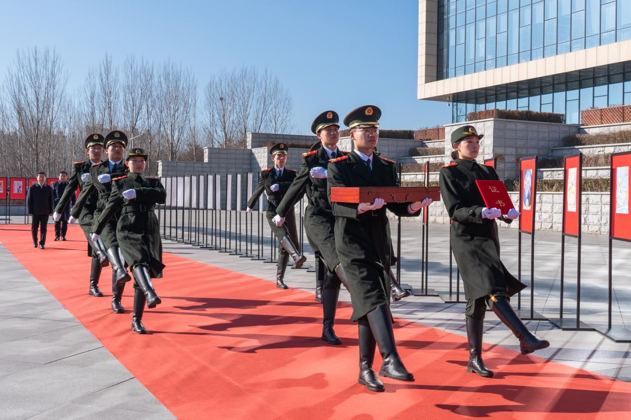 赵丁选宣读国旗赠予证书,护旗手展示国旗。五星闪耀,熠熠生辉,鲜艳的五星红旗展开的瞬间,现场爆发出雷鸣般的掌声。全体师生面向国旗高声奏唱国歌。