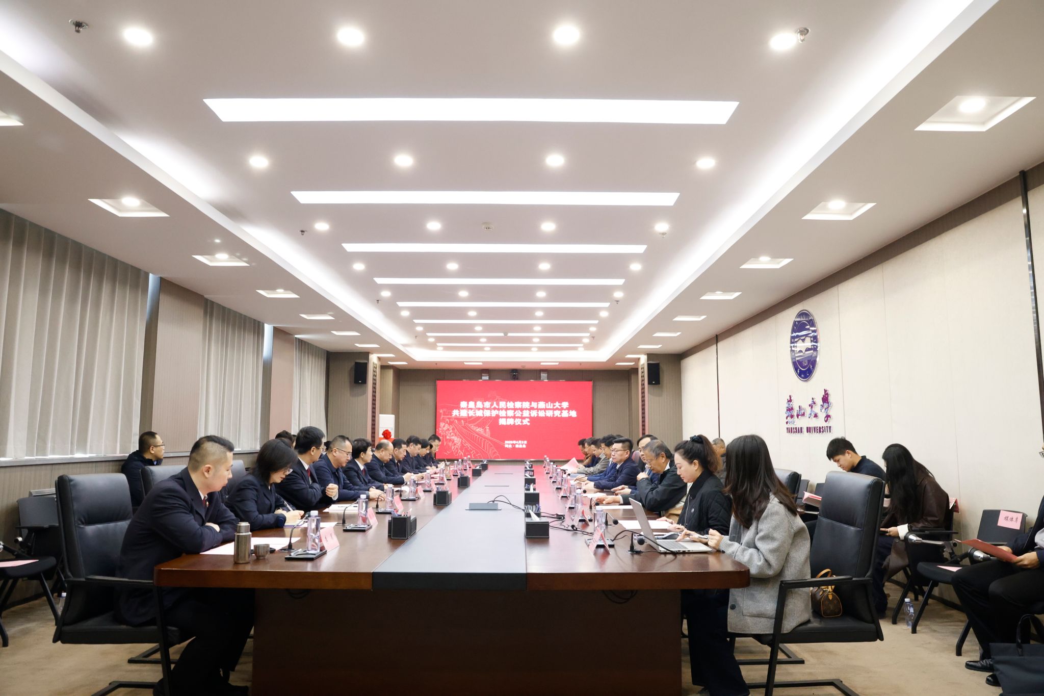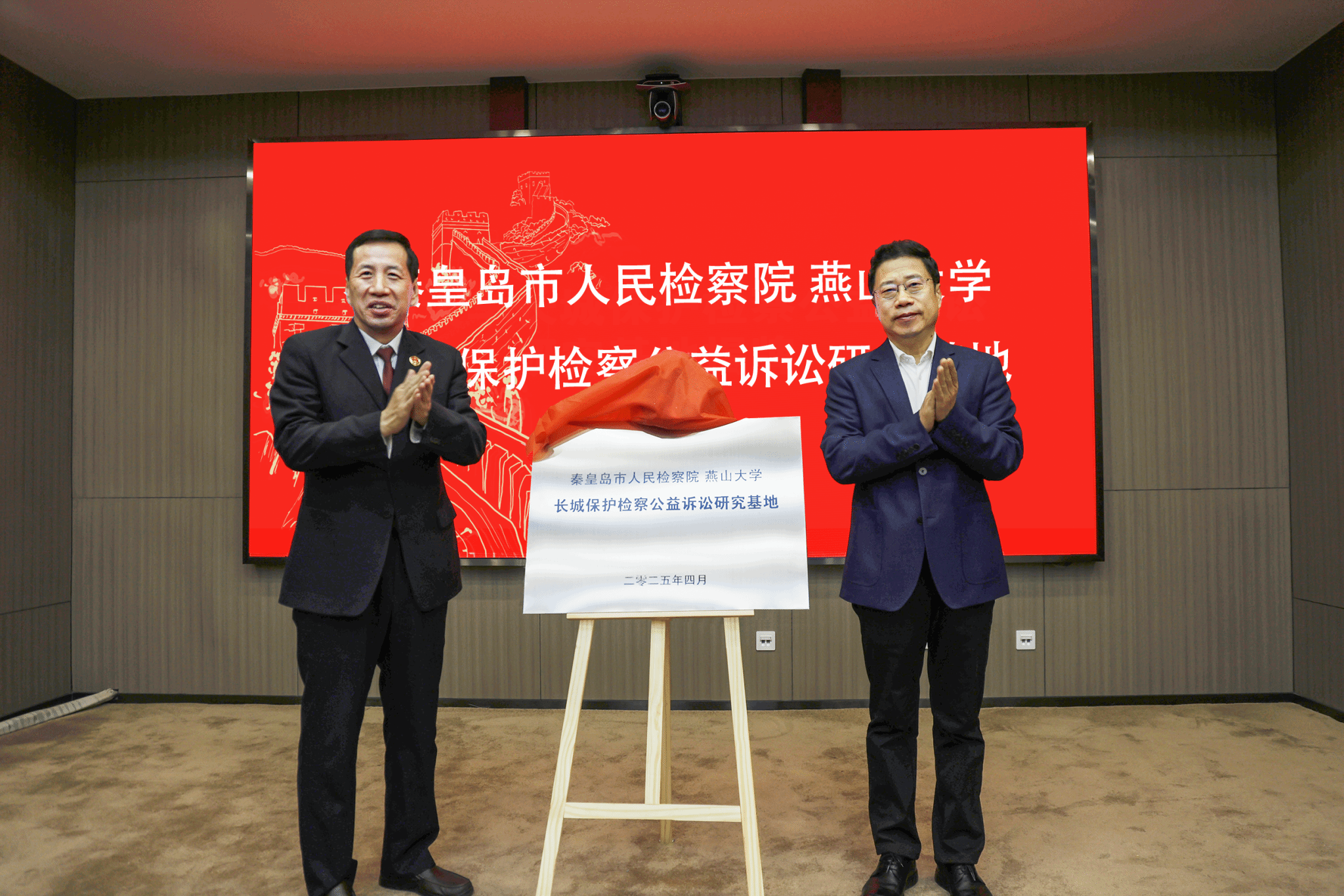 燕山大学党委书记赵险峰与秦皇岛市人民检察院党组书记、检察长黄英杰共同为长城保护检察公益诉讼研究基地揭牌。