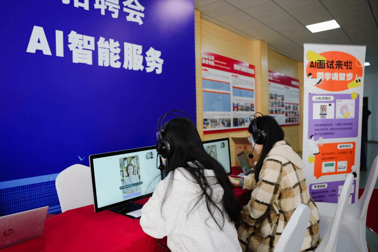 现场设置了“过来人”锦囊和AI智能服务区。邀请100位来自不同行业、不同岗位的往届毕业生结合亲身经历以“锦囊”的形式为学弟学妹们提供求职建议和指导。从简历制作的细节优化,到面试技巧的传授,再到职场心态的调整,“过来人”们毫无保留地分享经验,让应届毕业生们受益匪浅。毕业生们可在AI智能服务区模拟真实的面试场景,根据AI智能系统专业的分析和建议,提升毕业生面试表现。通过传统经验与现代科技的创新共振,实现代际对话与技术赋能深度融合,充分体现了文法学院(公共管理学院)、体育学院构建全链条、立体化就业支持体系的前瞻性探索。