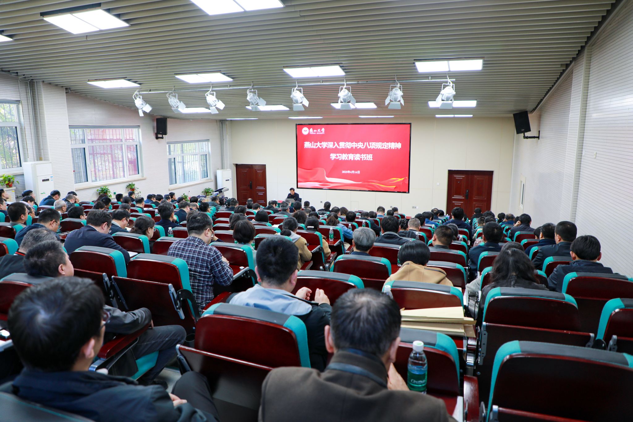 【新闻中心讯】4月11日至4月14日,燕山大学党委举办深入贯彻中央八项规定精神学习教育读书班,通过党委理论学习中心组学习、专题辅导报告、个人自学、集中研读、警示教育等方式学习《习近平关于加强党的作风建设论述摘编》和中央八项规定及其实施细则精神。学校领导班子成员、全体处级干部参加读书班。