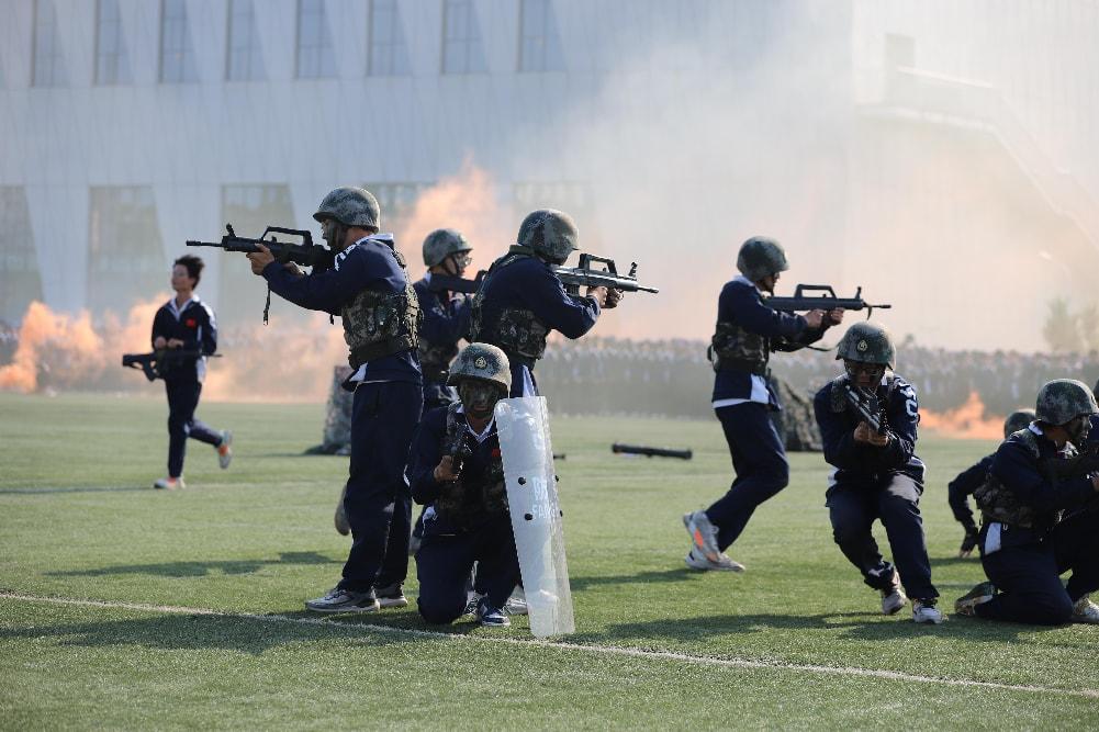 随后,全校2024级本科参训学生通过分列式、战术综合演练、军体拳、匕首操、刺杀操、捕俘拳等项目向师生汇报军训成果。