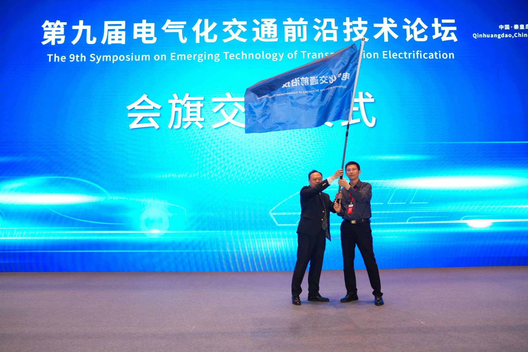 特邀大会报告结束后,举行了论坛会旗交接仪式,由燕山大学电气工程系主任曲正伟教授主持。第十届电气化交通前沿技术论坛的承办单位代表,上海交通大学朱淼教授发表了精彩致辞,随后从本届论坛主席郭小强教授手中接过会旗,象征着论坛使命的延续与传承。