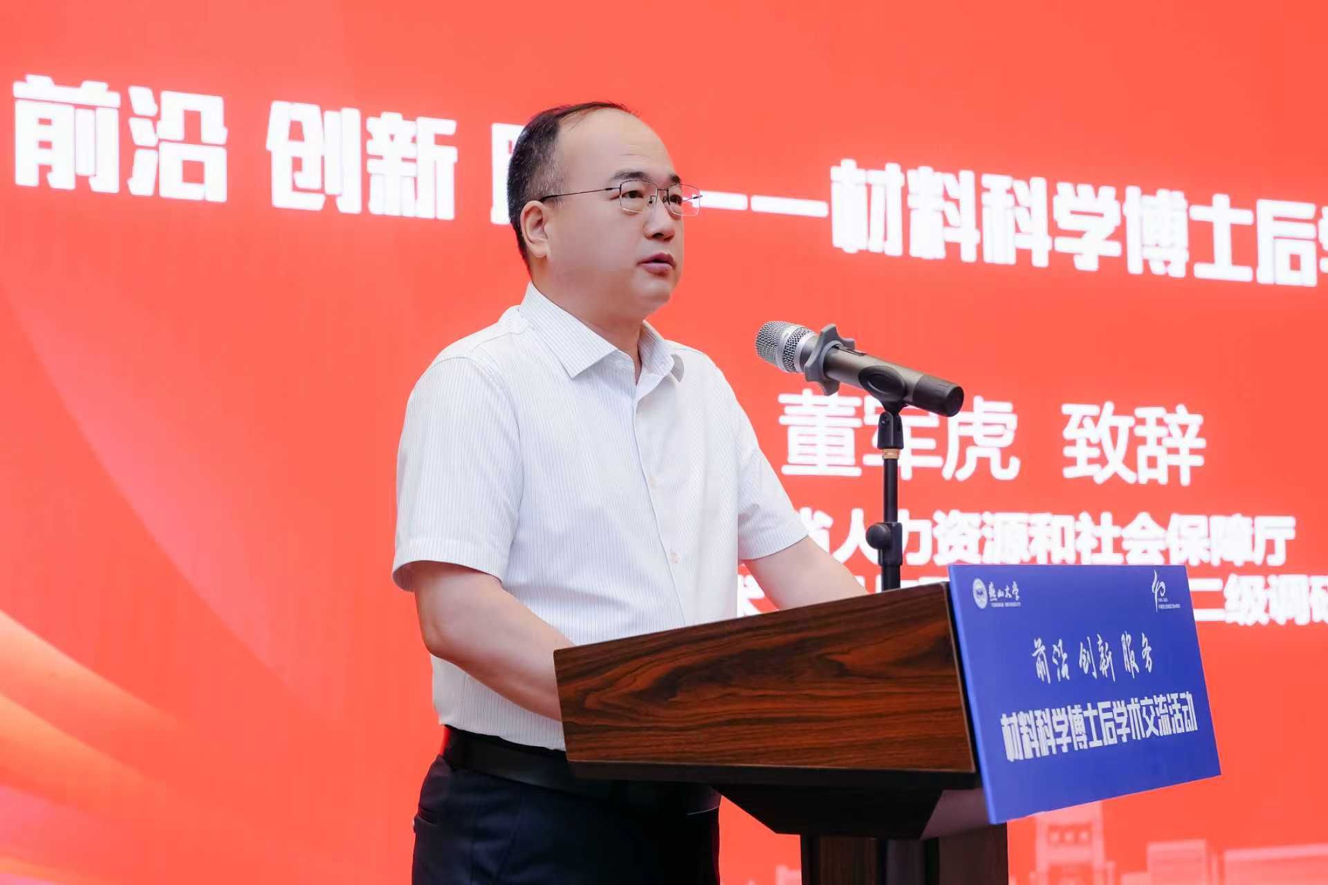 河北省人社厅专业技术人员与职称管理处二级调研员董军虎在致辞中指出,博士后制度是我国高层次创新人才培养的重要机制,青年博士后人才是推动科技自立自强、攻克关键核心技术、促进产学研深度融合的生力军。作为河北省首个设立博士后科研流动站的高校,燕山大学三十年来始终走在高层次人才培养前列。依托亚稳材料全国重点实验室等国家级平台,学校在材料科学领域积累了深厚实力,为服务国家战略需求和区域经济社会发展做出了重要贡献。