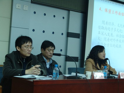 王俊杰局长对2007年全国发生的国防科研生产失泄密事件做了详细通报,王彦宏科长从“我国保密工作面临的新形势、当前窃密与反窃密斗争的特点和面对挑战应做的工作”三个方面对保密工作做了深入讲解,列举了国内外各类典型的案例,并结合学校实际有针对性地对我校涉密人员如何做好保密工作给予了具体指导。军工与保密办传达了国防科工委和省国防科工办近期在保密工作方面的相关文件和会议精神。