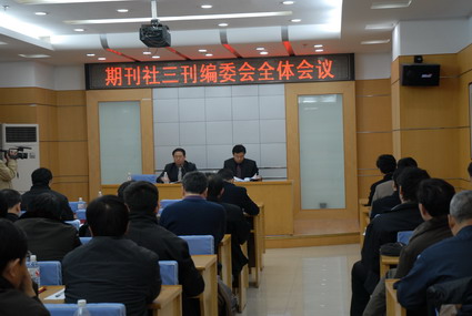 期刊社社长韩树民作了工作汇报,在报告中他总结了期刊社现状、近四年来期刊社存在的主要问题以及期刊社近期的工作目标、任务和措施。他表示期刊社近期要做好努力扩大稿源数量和提高稿源质量;加强管理,提高办刊质量,办出特色;积极主动对外联系,提高知名度,扩大影响等工作。期刊社制定了以下发展目标:(1)2008年要扎实抓稿源抓建设,调整栏目和编审程序。(2)2009年《燕山大学学报》冲击EI检索收录扩展源。(3)2009-2010年《燕山大学报》(哲学社会科学版)冲击CSSCI检索收录源。(4)2012年《教学研究》、《燕山大学学报》和《燕山大学报》(哲学社会科学版)共同冲击四年公布一次的中文核心期刊要目总览。