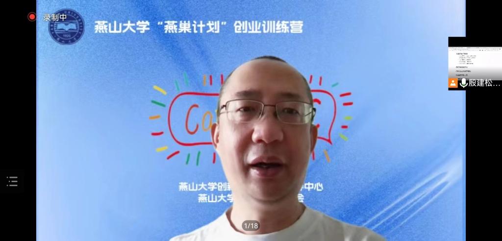 【新闻中心讯】7月9日-15日,燕山大学第三期“燕巢计划”创业训练营通过线上方式成功举办。本期训练营由创新创业教育与指导中心主办,邀请清华大学创业导师、校园VC创始合伙人殷建松担任教练,来各学院的200余名优秀创新创业学生代表参加集训。
