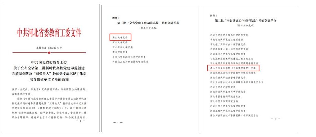 【新闻中心讯】开展新时代党建示范创建和质量创优工作,是高校基层党建质量持续提升的引领工程。我校党委对此高度重视,精心谋划,认真组织,在近日公布的全省第二批新时代高校党建示范创建和质量创优工作遴选结果中,我校申报项目在4个项目类别中均获入选,具体为:燕山大学党委入选“全省党建工作示范高校”培育创建单位,文法学院(公共管理学院)党委入选“全省党建工作标杆院系”培育创建单位,马克思主义学院毛泽东思想和中国特色社会主义理论体系概论教研部党支部入选“全省党建工作样板支部”培育创建单位,电气工程学院自动化系党支部书记工作室入选“全省党建工作‘双带头人’工作室”培育创建单位。