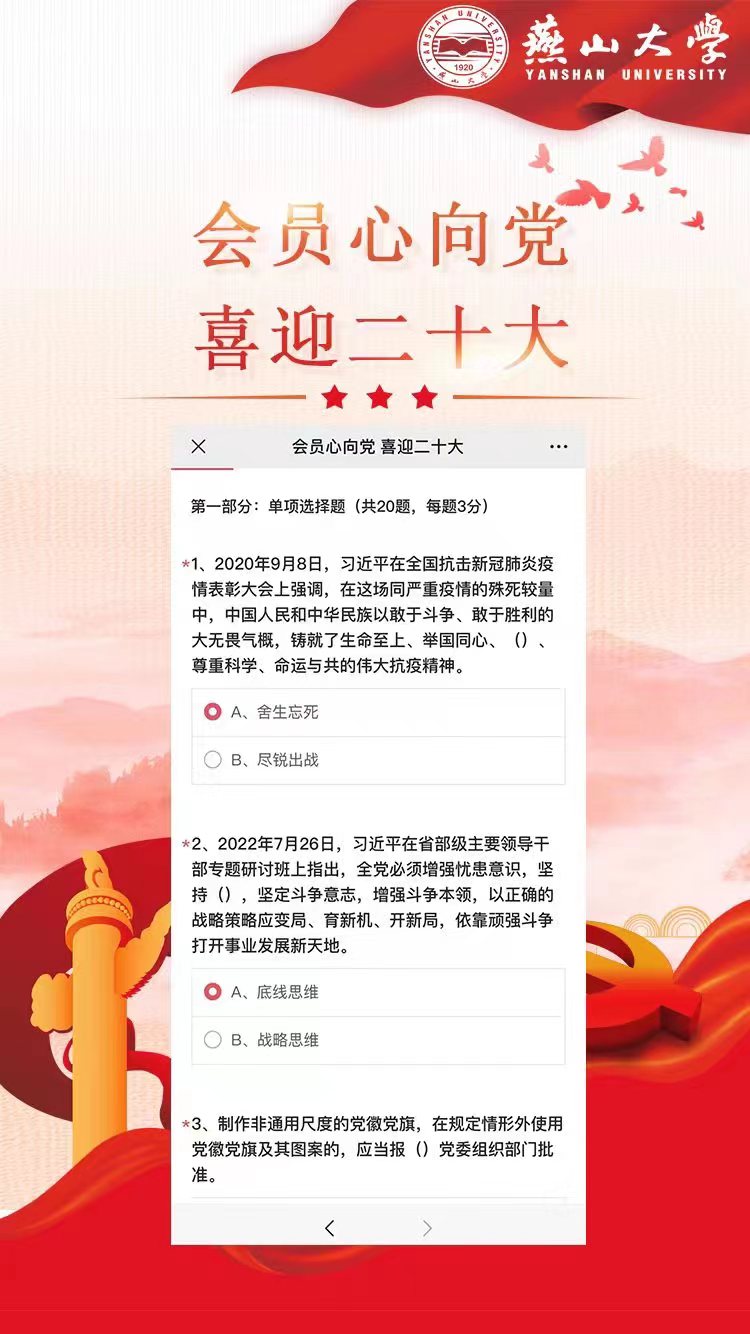 【新闻中心讯】为喜迎党的二十大胜利召开,团结引领广大会员坚定跟党走,激励教职工更好地为学校发展建功立业,以实际行动献礼第三十八个教师节,校工会联合经济管理学院分工会于9月7日至22日举办了《会员心向党 喜迎二十大》党的知识答题活动。