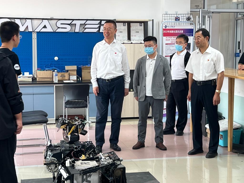 仪式结束后,与会人员在燕工坊一同参观了2022年创新社团风采展。任家东副校长实地检查了燕工坊的设施条件,认真查看学生的科技作品,并与学生开展亲切交流,鼓励他们积极创新,勇于实践,不仅要在科技比赛中取得好成绩,更要瞄准国家重大需求和工程应用背景,学好本领,为国家、社会做出燕大人的贡献。(编辑 褚玉晶)