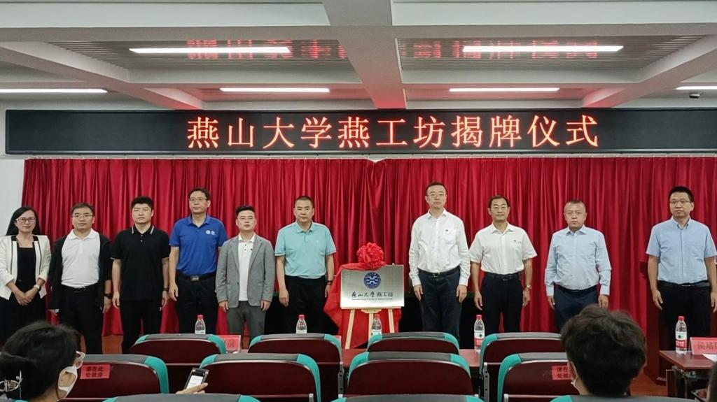 【新闻中心讯】9月30日上午,燕山大学“燕工坊”揭牌仪式在第三教学楼举行。燕山大学党委常委、副校长任家东、秦皇岛市小马物联网科技开发有限公司总经理王伟、燕山大学相关部门负责人和燕工坊入驻社团学生代表一同参加活动。