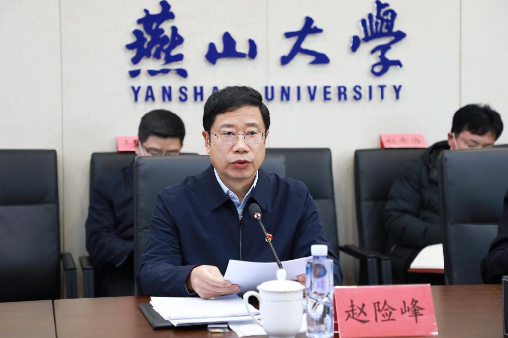 【新闻中心讯】按照省委统一部署,2月9日,燕山大学党委常委班子召开2022年度民主生活会,以全面贯彻习近平新时代中国特色社会主义思想,深刻领悟“两个确立”的决定性意义,增强“四个意识”、坚定“四个自信”、做到“两个维护”,团结带领党员干部群众以奋发有为的精神贯彻落实党的二十大作出的重大决策部署为主题,紧密联系学校工作实际,深入进行自我检查和党性分析,严肃开展批评和自我批评。校党委书记赵险峰主持会议并作总结讲话。省委第十九督导组到会指导,督导组组长、省委教育工委副书记(正厅级)王俊华对会议进行点评。