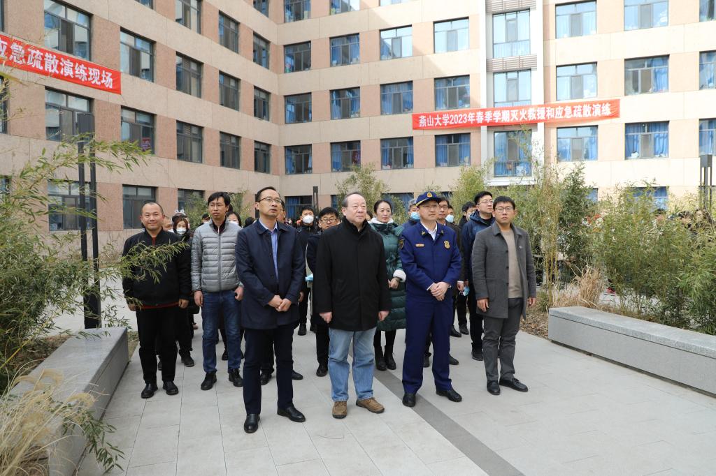 【新闻中心讯】为进一步提高师生消防安全意识,增强灭火和应急疏散技能,3月11日上午,我校联合秦皇岛市消防救援支队在东校区第一学生公寓举行“燕山大学2023年春季灭火救援和应急疏散演练”。学校消防值班员、楼宇安全管理员和师生代表共计1300余人参加和观摩了此次演练。学校党委副书记谢延安、秦皇岛市消防救援支队副支队长张鹏以及学校相关部门负责人出席了本次活动。