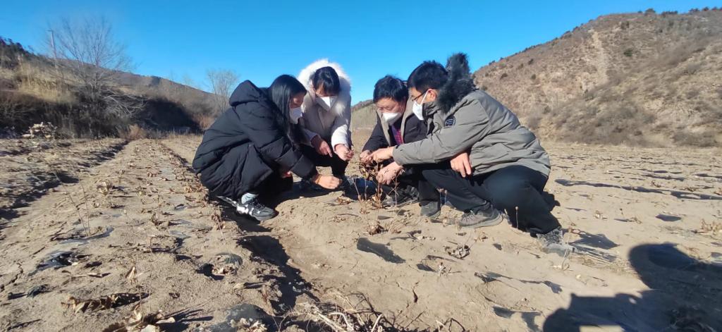 银里村驻村干部与村致富带头人查看苍术越冬情况