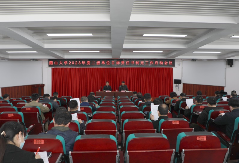 【新闻中心讯】3月16日下午,燕山大学2023年度二级单位目标责任书制定启动会议在东区第三教学楼213召开。党委常委、副校长陈国强出席会议,全校51个二级单位主要负责人参加了会议。会议由考核工作领导小组办公室副主任王培龙主持。