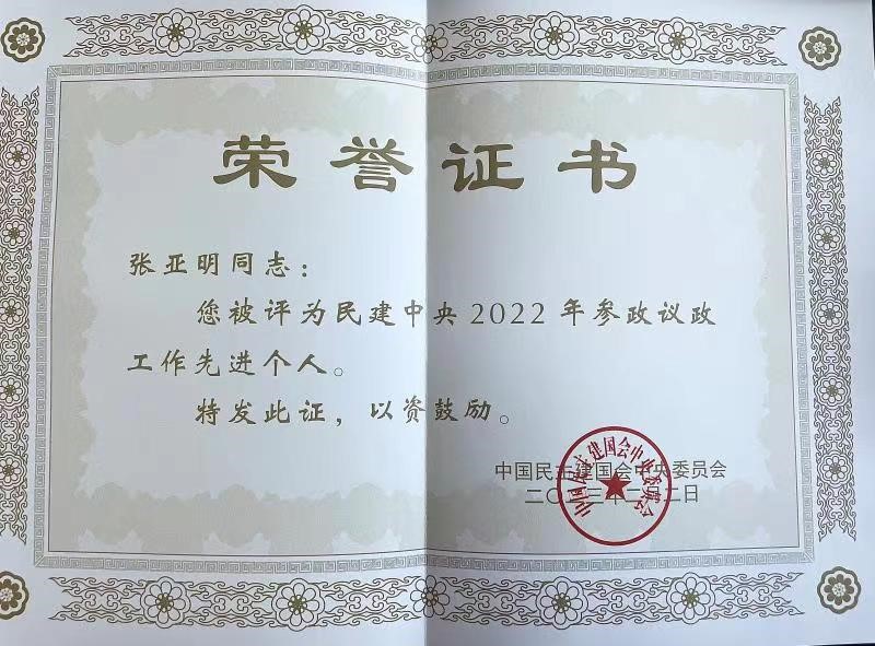 【新闻中心讯】近日,我校张亚明教授(原民建秦皇岛市委副主委、燕山大学支部主委)被评为民建中央2022年参政议政工作先进个人。