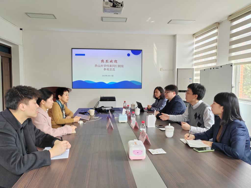 此前3月14日上午,唐山师范学院吴海波一行到我校档案馆调研。双方就高校档案实体分类、管理模式、部门立卷、档案服务利用以及档案数字化工作进行了沟通交流和经验分享。