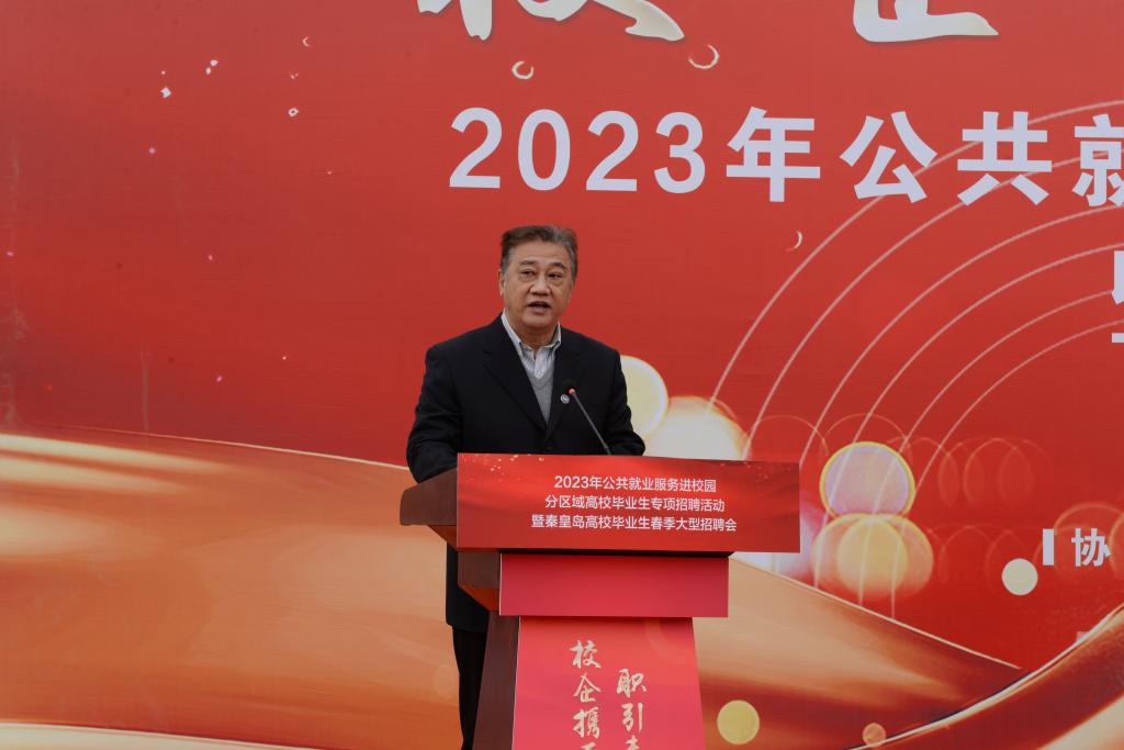 招聘会启动仪式上,我校招生就业处处长张红兵代表驻秦高校毕业生就业职能部门作了题为《校因市兴、市以校荣、人才为先、合作共赢——重引导、搭平台、抓输送,为秦皇岛市高质量发展提供强有力人才支撑》的典型发言。