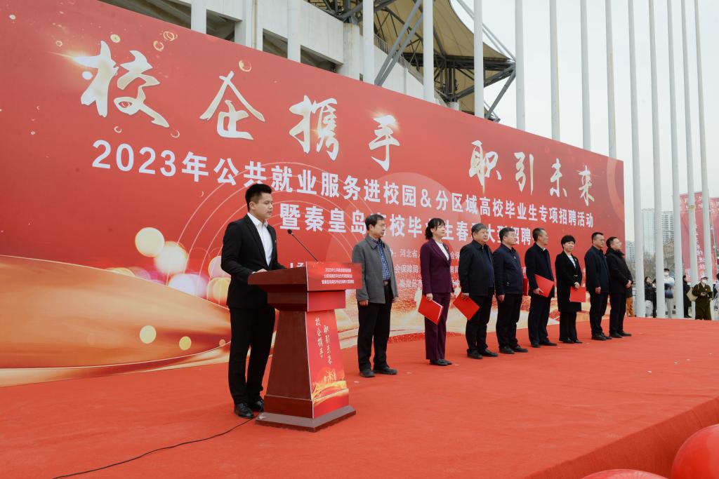 【新闻中心讯】3月25日,由秦皇岛市人社局、教育局、团市委、工商联共同主办的2023年公共服务进校园、分区域高校毕业生专项招聘活动暨2023年秦皇岛高校毕业生春季大型招聘会在奥体中心举办。招聘会当天有重点央企、优质民企、中小微企业等领域近300家企业参会,共提供1.4万个就业岗位。其中包括中铁山桥、哈电重装、康泰医学等8家央企、27家国企、54家大型知名企业。另外,天津、唐山、沧州等公共人才服务机构组织30余家用人单位参会。招聘单位包含了高端装备制造、汽车零部件、生命健康、电子信息、金融保险、商贸服务等待遇较好的行业,招聘岗位主要集中在技术类、行政文职类、管理类、计算机类等具有较高技术含量的职位。燕山大学组织1000余名师生参加招聘活动,并在大会启动仪式上作了典型发言。