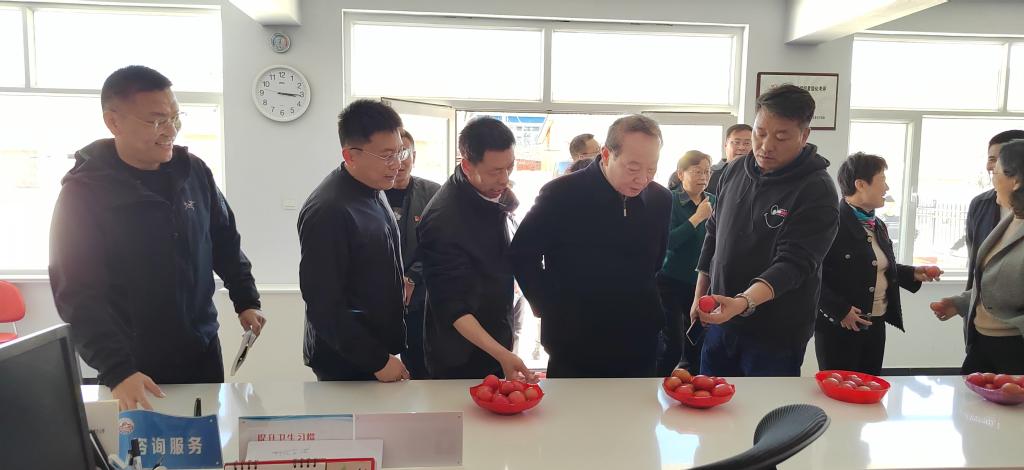 谢延安在来太沟村了解第一穗西红柿收成情况