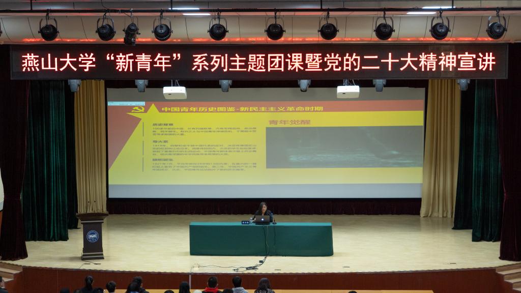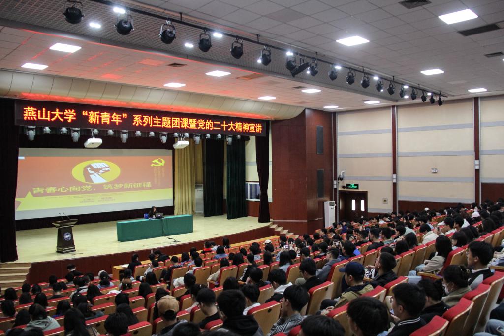 【新闻中心讯】4月8日,燕山大学“新青年”系列主题团课暨党的二十大精神宣讲活动第一课在西校区大学生活动中心举行,来自国网冀北电力有限公司秦皇岛供电公司和河北港口集团的秦皇岛市青年讲师团成员崔玉璐、任一骁现场授课,校团委专职团干部、学生骨干和部分学院团支部书记参加活动。