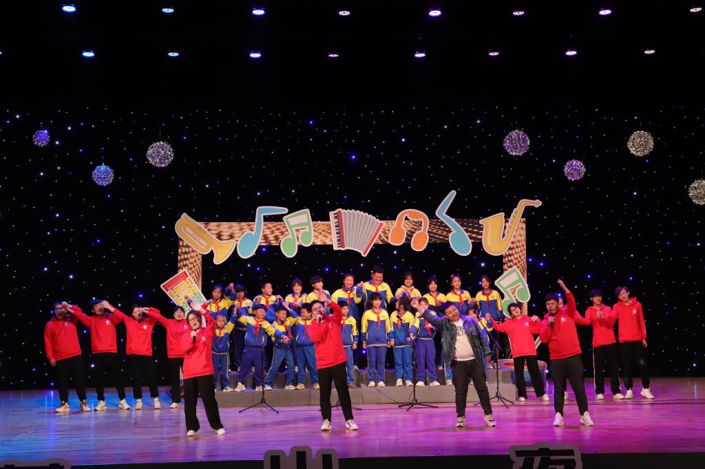 龚新亮和山村小学合唱团现场演绎