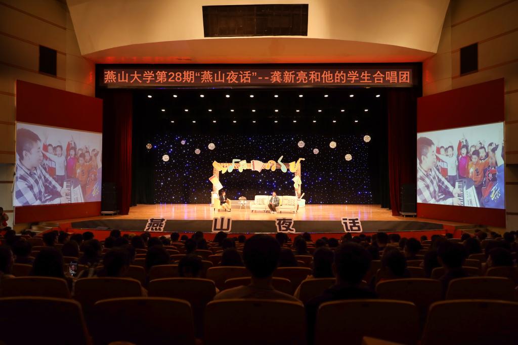 【新闻中心讯】4月16日,燕山大学第二十八期“燕山夜话”在东校区大学生活动中心109室举办。本期活动邀请嘉宾为“中国好人”“河北省向上向善好青年”、秦皇岛市驻操营小学水门寺教学点音乐教师龚新亮,以及他组建的山村小学合唱团。现场近千名师生倾听了龚新亮老师的事迹分享和合唱团21名小学生的温暖演唱。