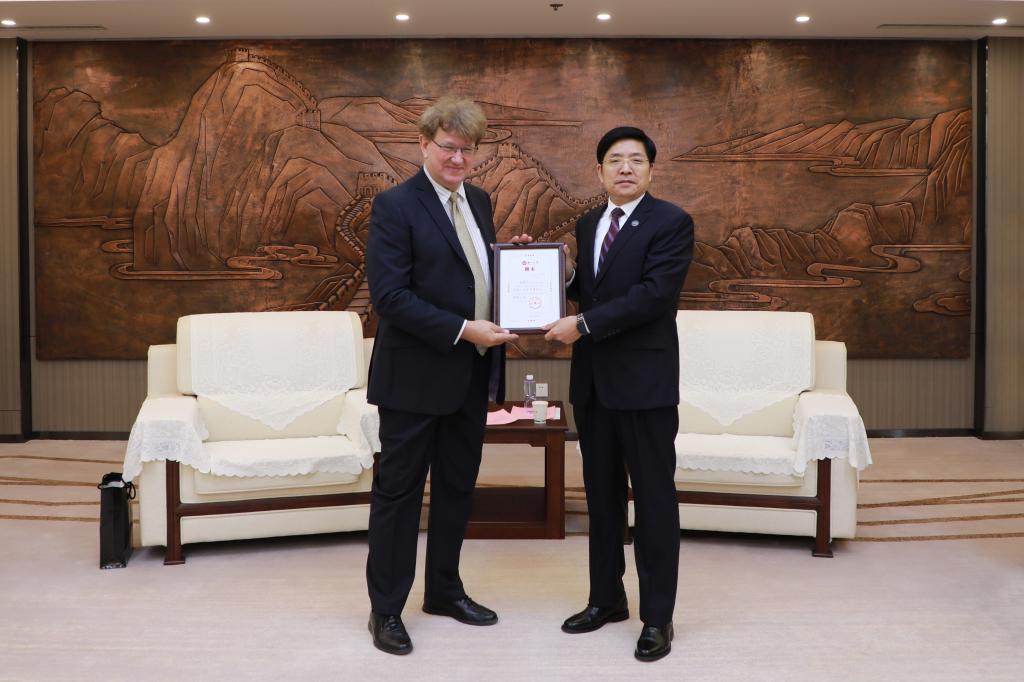 随后,赵丁选向维尔奇格罗赫院士颁发了聘书,并一同为我校外国院士工作站进行揭牌。