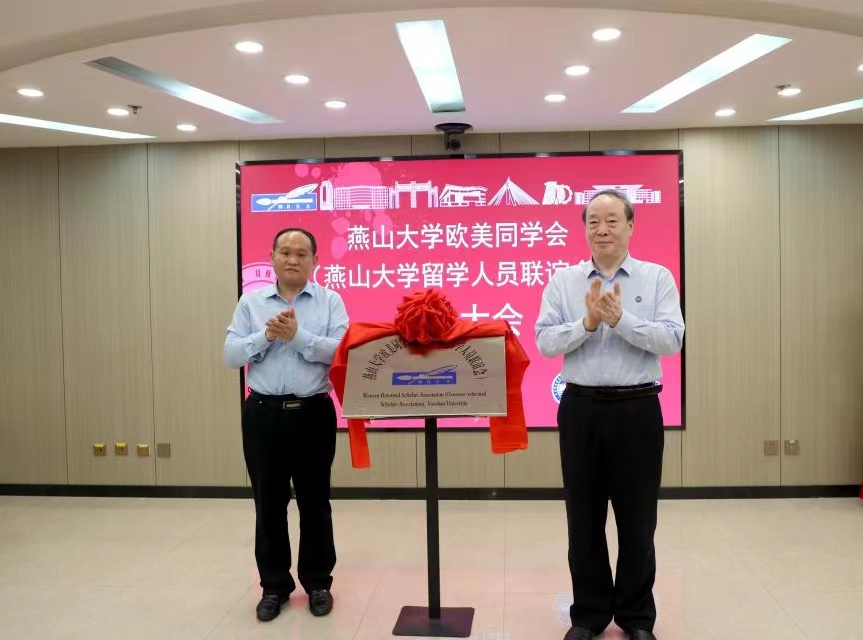 谢延安与关东亮为燕山大学欧美同学会(燕山大学留学人员联谊会)揭牌