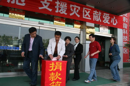 2008年5月16日上午9:00,在科技园创业中心楼前,园区22家企业代表和数百名职工,为灾区人民募捐赈灾款251948元。燕山大学国家大学科技园、燕大产业集团党委书记赵静一宣读了《支援灾区献爱心倡议书》,倡议全体员工共同伸出援助之手,用我们的一颗爱心救助处于震灾之中的四川灾民,使他们看到生的希望!让我们发扬“一方有难、八方支援”的精神,向地震灾区捐款,用爱心撑起抗灾的力量,用信念帮助受灾的人民,万众一心、众志成城,共同夺取抗震救灾斗争的胜利!