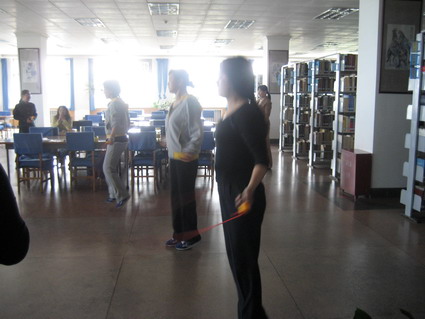 【新闻中心讯】为增强职工身体素质,用实际行动迎接北京奥运会,5月15日下午,图书馆工会组织全馆职工跳绳比赛。 此次比赛设两个项目:40岁以上职工参加“快乐参与”达标赛,40岁以下职工参加1分钟计时赛。周琴、严妍、姜波、程文艳、刘颖、马兰六名同志获得本次跳绳比赛的前六名。(编辑 艾冬梅)