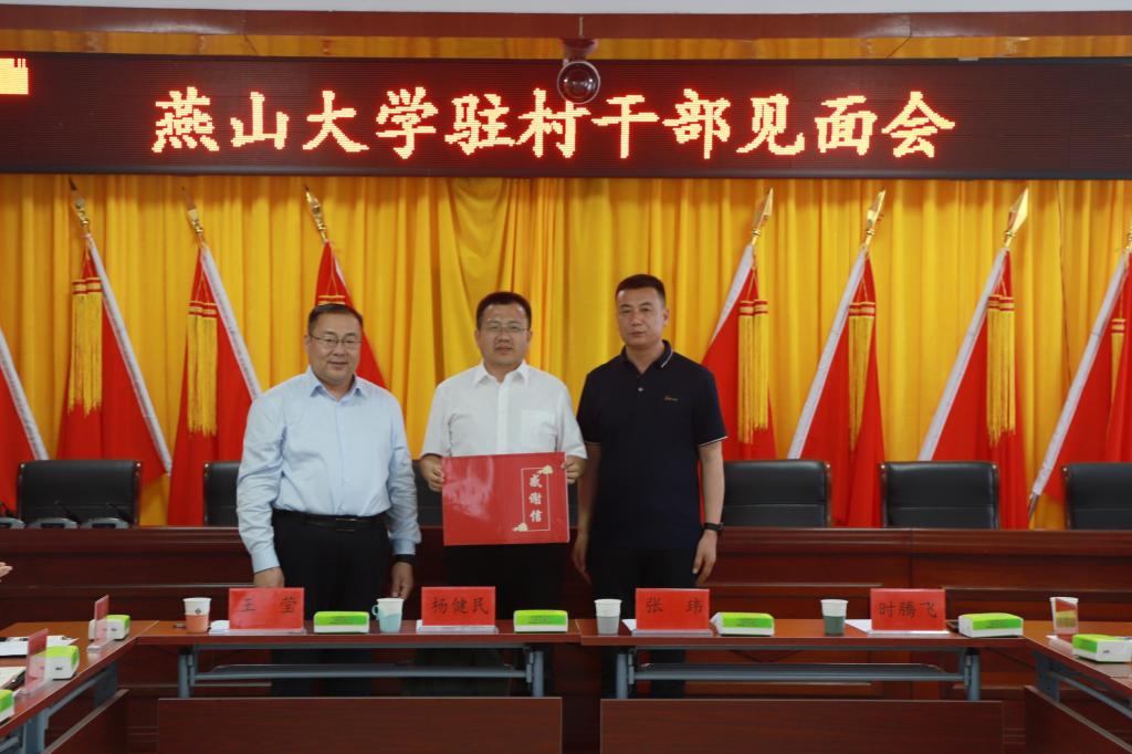在银窝沟乡会议室举行的驻村干部见面会上,乡党委书记李俊文、乡长暴利坡等领导向学校党委和杨健民等4位即将荣归学校的驻村干部颁发了感谢信,衷心感谢燕山大学和4位驻村干部给予银窝沟乡乡村振兴工作的大力支持,希望他们“常回家看看”。李俊文代表银窝沟乡党委政府对新一批驻村干部的到来表示热烈欢迎,希望与新一批驻村干部并肩战斗,在乡村振兴新征程上再创辉煌。