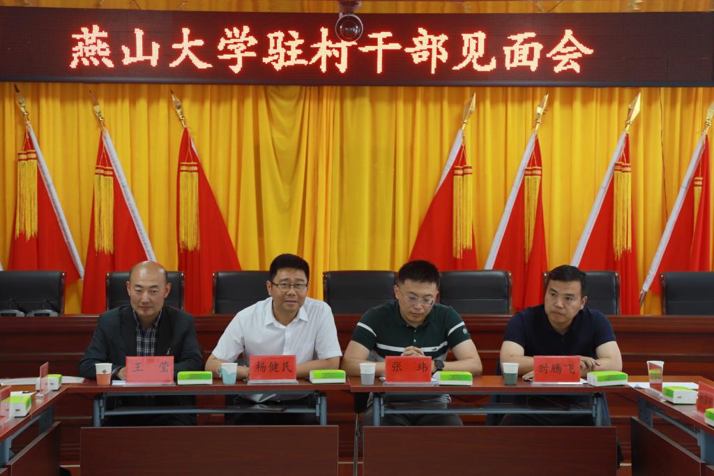 【新闻中心讯】6月12日,燕山大学党委常委、副校长蔡星周一行陪送人力资源处副处长马巨海、教务处正科级秘书潘文宇、车辆与能源学院综合办公室正科级秘书张洋、电气工程学院综合办公室正科级秘书王怀宝等4位新一批驻村干部,赴承德市围场满族蒙古族自治县银窝沟乡报到,迎接顺利完成驻村阶段性任务的银里村第一书记、工会副主席杨健民,来太沟村工作队员、团委正科级干事张玮,马连道村驻村队员、信息科学与工程学院综合办公室正科级秘书时腾飞、后勤服务中心居委会主任王莹等4位驻村干部荣归学校。