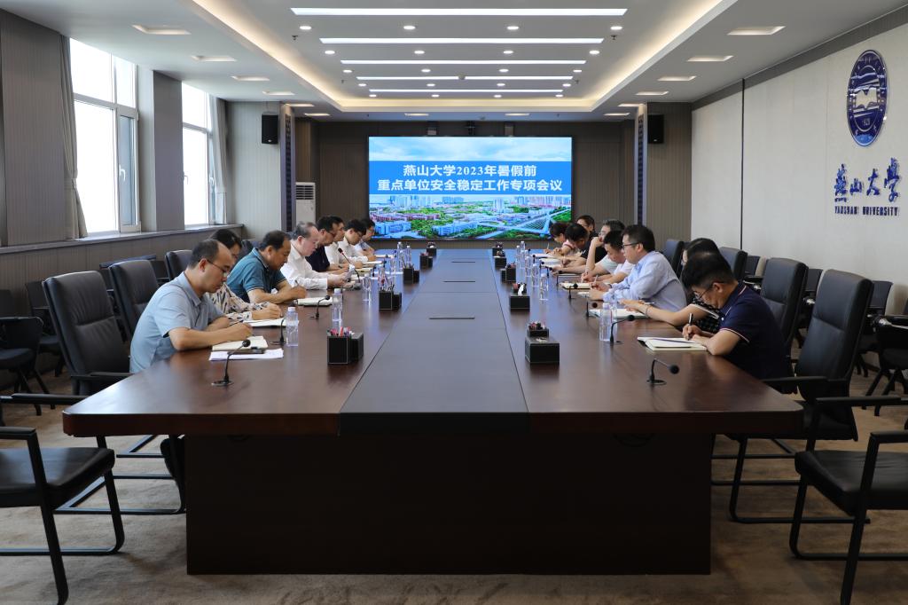 【新闻中心讯】6月25日下午,燕山大学2023年暑假前重点单位安全稳定工作专项会议在世纪楼2103会议室召开。校党委副书记、学校安全稳定(生产)工作领导小组副组长谢延安出席会议,相关部门负责人参加了会议。会议由安全工作处处长陈徽主持。