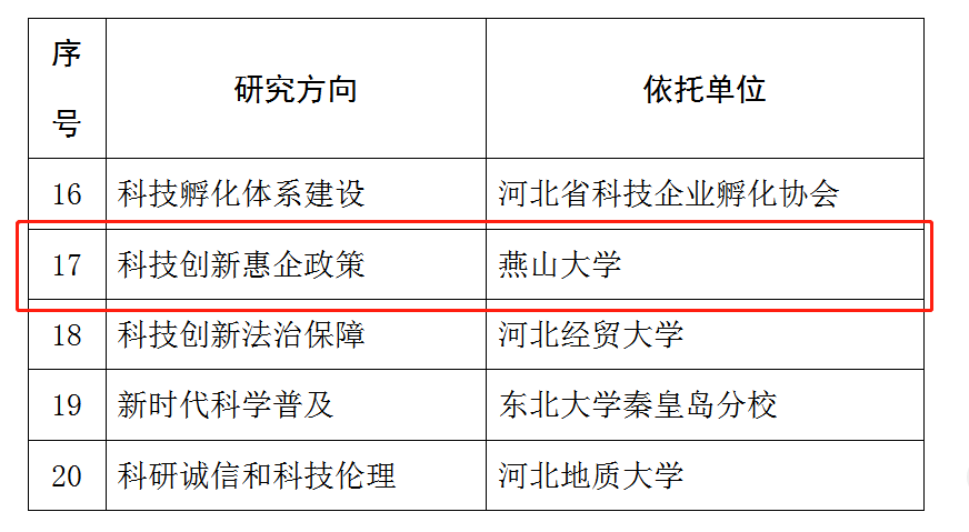 【新闻中心讯】近日,河北省科学技术厅发布了“河北省科技创新智库名单”,确定了20家智库为河北省科技创新智库。以我校文法学院(公共管理学院)刘邦凡教授为负责人申报的“科技创新惠企政策”智库成功入选。