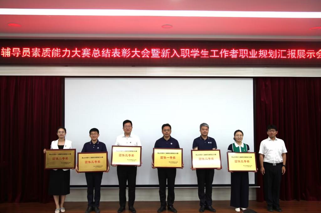 王银思介绍了我校辅导员连续六次蝉联河北省高校辅导员素质能力大赛团体特等奖,宣布了学校第十二届辅导员素质能力大赛表彰决定。本届校赛共设置基础知识、案例研讨、理论宣讲、谈心谈话4个环节;经过激烈角逐,机械工程学院获得团体一等奖,艺术与设计学院、文法学院获得团体二等奖,材料科学与工程学院、电气工程学院、国际教育学院获得团体三等奖;陆颖等6位老师获得基础知识单项奖、王昕琦等6位老师获得案例研讨单项奖、赵妍茹等6位老师获得理论宣讲单项奖、石燕凯等6位老师获得谈心谈话单项奖;会上党委学生工作部领导为获奖团队和个人颁发奖牌和证书。