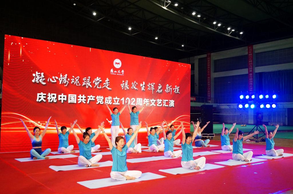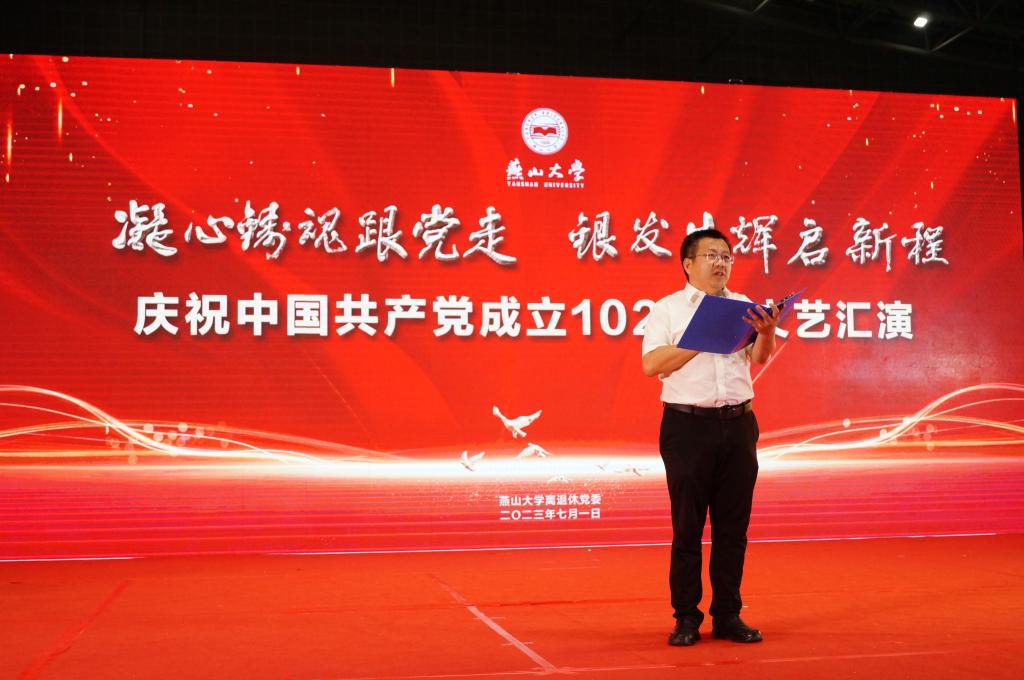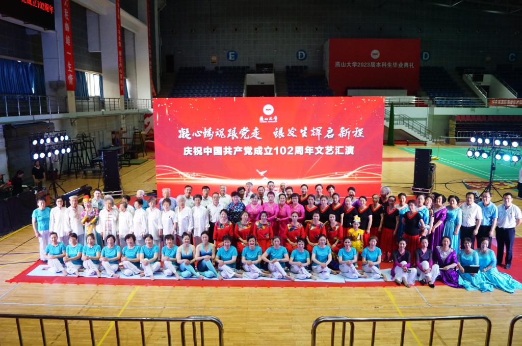 【新闻中心讯】为庆祝中国共产党成立102周年,继承和发扬党的光荣传统和优良作风,讴歌党的丰功伟绩,7月1日下午,在燕山大学东校区体育馆,离退休党委举办了“凝心铸魂跟党走,银发生辉启新程”庆祝建党102周年文艺汇演。共有400余名退休教职工、大学生、幼儿园小朋友参与到此次活动中来,向伟大的党献上最诚挚的祝福。
