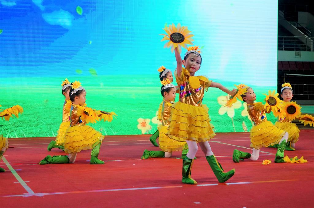 燕山大学幼儿园的小朋友表演舞蹈《花儿朵朵向太阳》