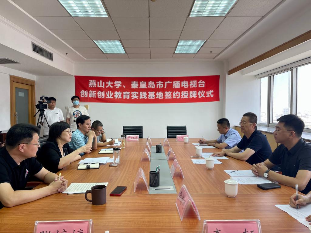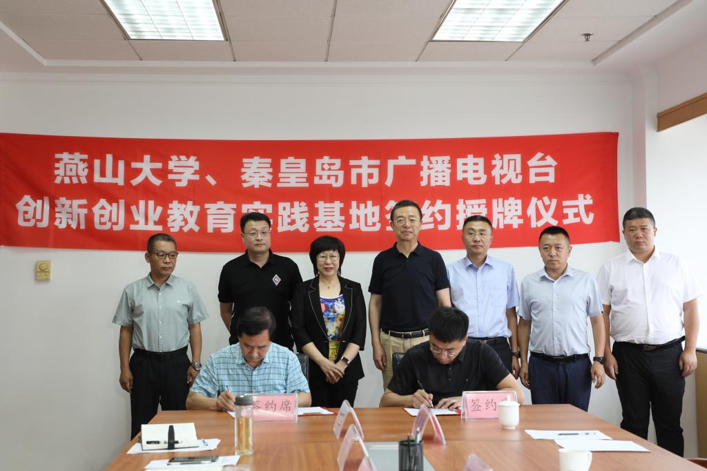 【新闻中心讯】7月5日下午,燕山大学与秦皇岛市广播电视台共建大学生创新创业教育实践基地签约授牌仪式在秦皇岛市广播电视台隆重举行。燕山大学党委常委、副校长任家东,市委宣传部副部长、市广播电视台台长、党委书记侯葵然出席仪式。燕山大学创新创业教育与指导中心、教师培训中心负责人参加仪式。仪式由秦皇岛市广播电视台副台长陈庆新主持。