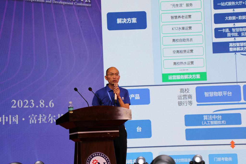 会上,齐齐哈尔市富拉尔基区委书记杨文波进行招商引资及营商环境主旨推介。他在主导产业、要素支撑、创新驱动三个方面对富拉尔基区发展现状进行了详细介绍。