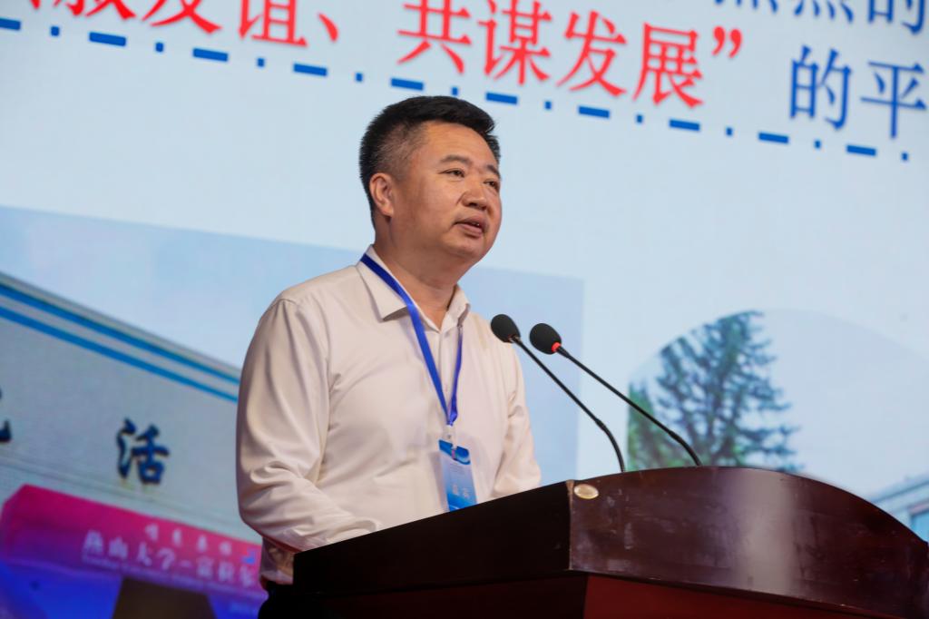 赵丁选代表燕山大学讲话。他表示,燕大的办学成就源于富区,离不开红岸沃士的文化涵育和富区人民的坚定支持。我们有着六十多年的共建历史,是校地合作的样板和典范。对于未来,他表示将优先推介优秀毕业生到富区工作,助力富区发展建设,并在实践教学、科技创新、成果转化等重点领域,以实习实训、科研立项、专利转让等为载体,进一步强化燕大—富区战略合作伙伴关系,加大科研成果就地转化和应用力度,扩大合作领域空间,全力提升服务地方建设的能力和水平。