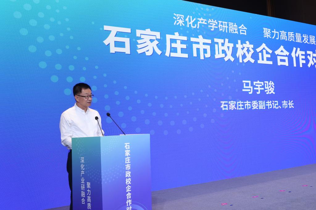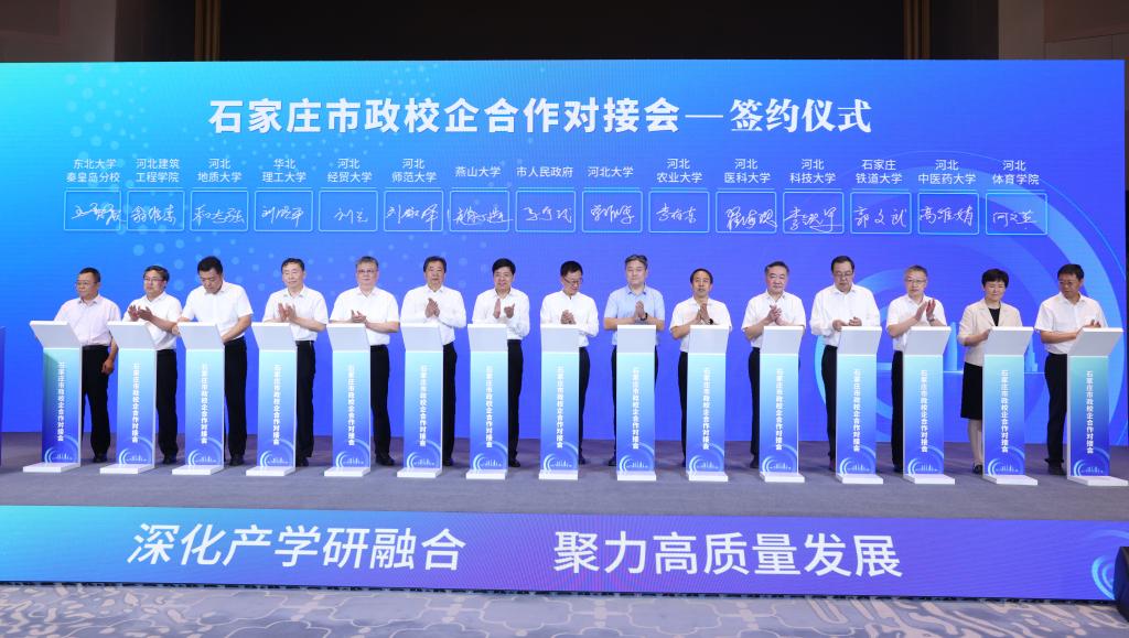 【新闻中心讯】8月25日-26日,由石家庄市人民政府主办,以“深化产学研融合聚力高质量发展”为主题的政校企合作对接会在石家庄滹沱宾馆举行。校长赵丁选应邀出席活动,学校办公室,大学科技园、技术转移中心等部门相关人员一同参加活动。河北省委常委、石家庄市委书记张超超,市委副书记、市长马宇骏,副市长李为军等有关领导及市直部门、驻冀高校和企事业单位代表参加了本次活动。