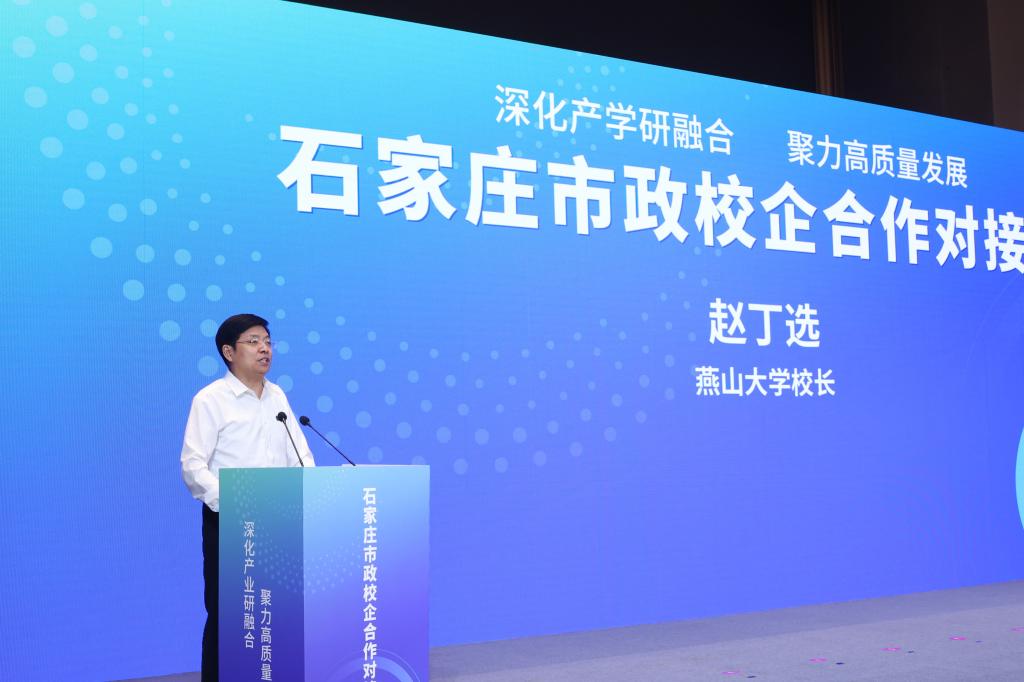 26日上午,政校企合作对接会正式召开,我校分别与石家庄市政府、长安区政府签署了战略合作协议。会上,赵丁选介绍了学校的发展历史和人才培养、成果转化等相关情况。他表示,燕山大学将以本次市校战略合作签约为契机,充分发挥自身特色优势,把更多、更好的科技成果应用到企业的生产线上,把更多、更好的人才输送到省会大地,共同推动省会经济社会高质量发展。