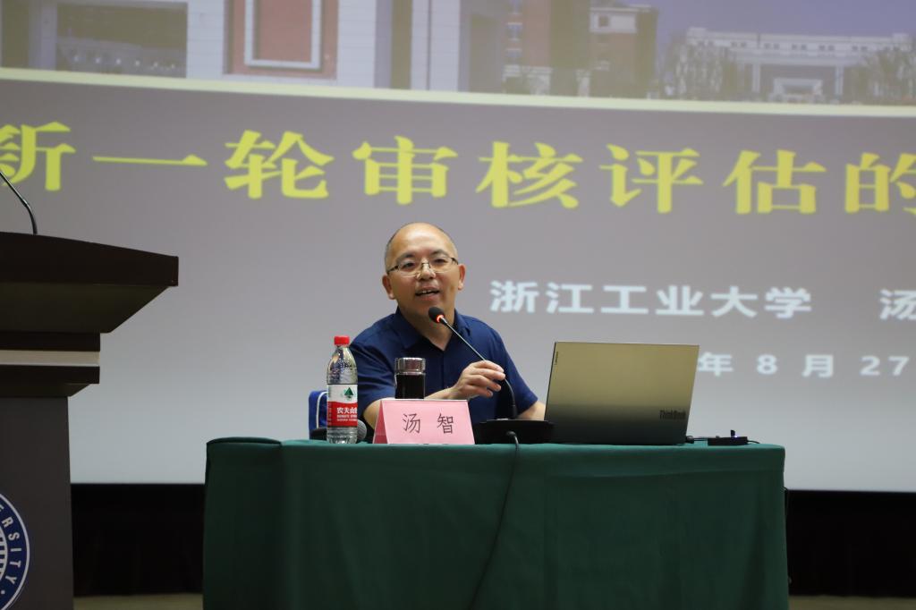 成都信息工程大学发展规划处处长、教学评估中心主任吴四九教授和浙江工业大学教务处副处长、教育科学与技术学院汤智教授分别以《统一思想、聚焦问题、强化责任、狠抓落实,高质量做好本科教育教学审核评估工作》和《新一轮审核评估的认识与实践》为主题,从刚刚完成本轮审核评估亲历者的角度讲解了学校各自的做法、经验、亮点工作等方面阐明了如何有序推进自评自建各项工作。