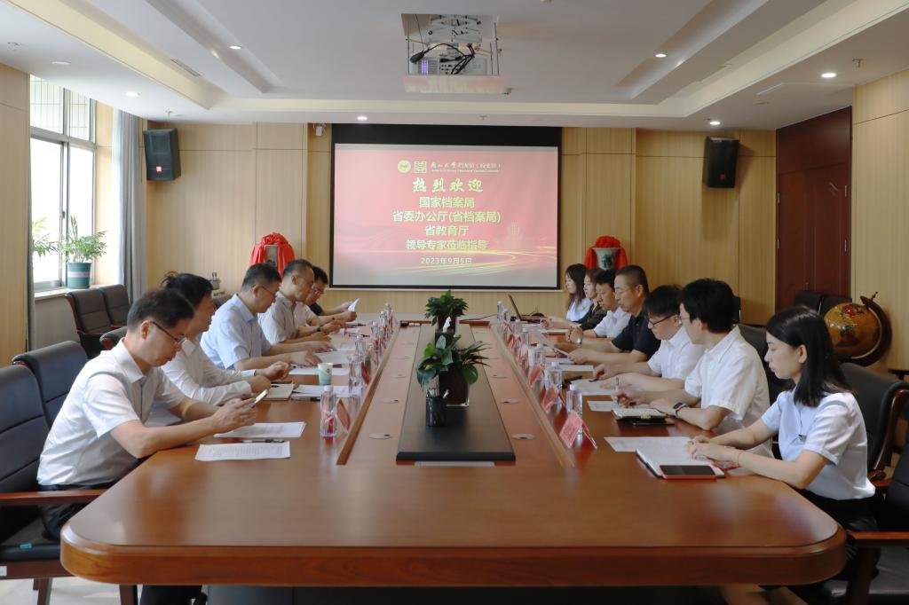 档案馆(校史馆)馆长郭沛汇报了学校档案工作概况和全国数字档案室建设试点开展情况。