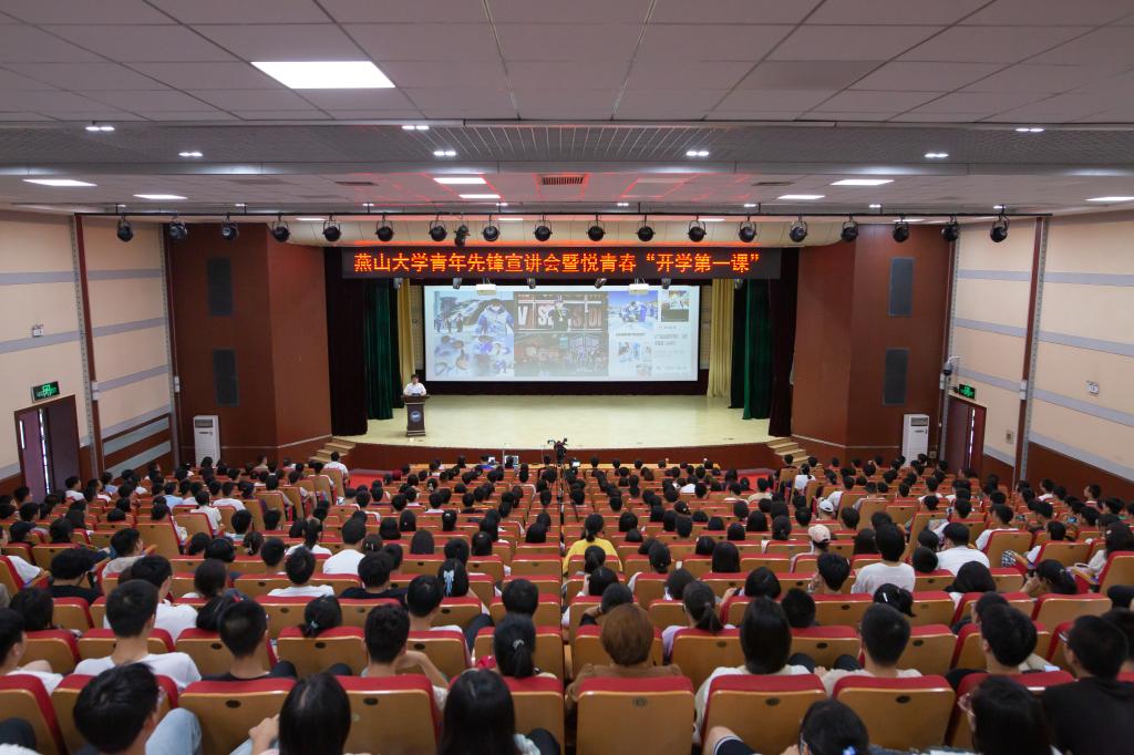 【新闻中心讯】为深入学习宣传党的二十大精神,抓住“开学季”关键节点,进一步发挥优秀学生的朋辈引领作用,9月14日,燕山大学青年先锋宣讲会暨悦青春“开学第一课”在西校区大学生活动中心举行,500余名新生代表参加了本次宣讲会。