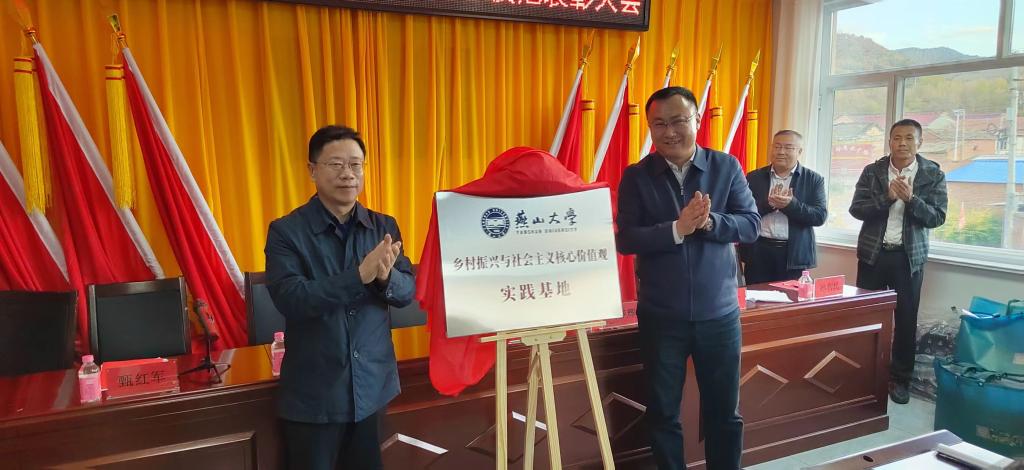 在来太沟村为“燕山大学乡村振兴与社会主义核心价值观实践基地”揭牌