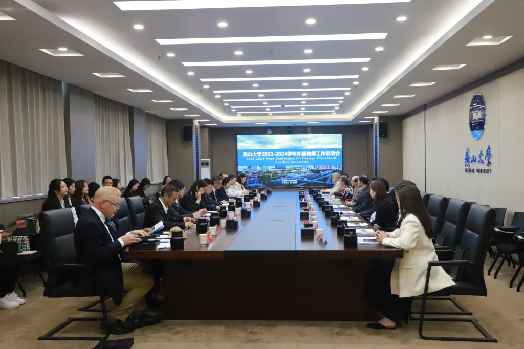 【新闻中心讯】10月12日下午,我校在世纪楼2103室举办2023-2024学年外籍教师工作说明会。学校党委常委、副校长陈国强、国际合作处处长陆军、教务处副处长赵春梅、人力资源处副处长刘汉峰、材料科学与工程学院副院长赵元春、外国语学院副院长付继林、艺术与设计学院副院长赵琳、在校全体外籍教师及各单位相关工作人员参加了会议。会议由国际合作处副处长朱虹主持。
