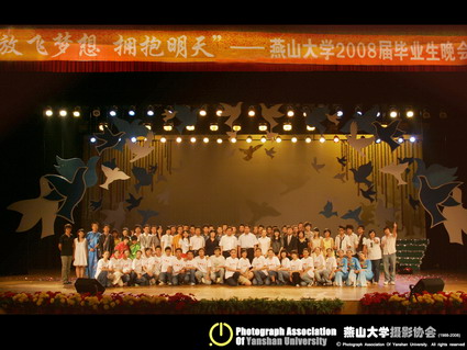 【新闻中心讯】6月13日晚7:30,由共青团燕山大学委员会举办的“放飞梦想,拥抱明天”——燕山大学2008届毕业生晚会,在东校区大学生活动中心举行,室外同时直播。校党委书记孟卫东、副书记盛婉玉、校长助理韩德才,以及相关部门和各院系领导、老师观看了晚会。